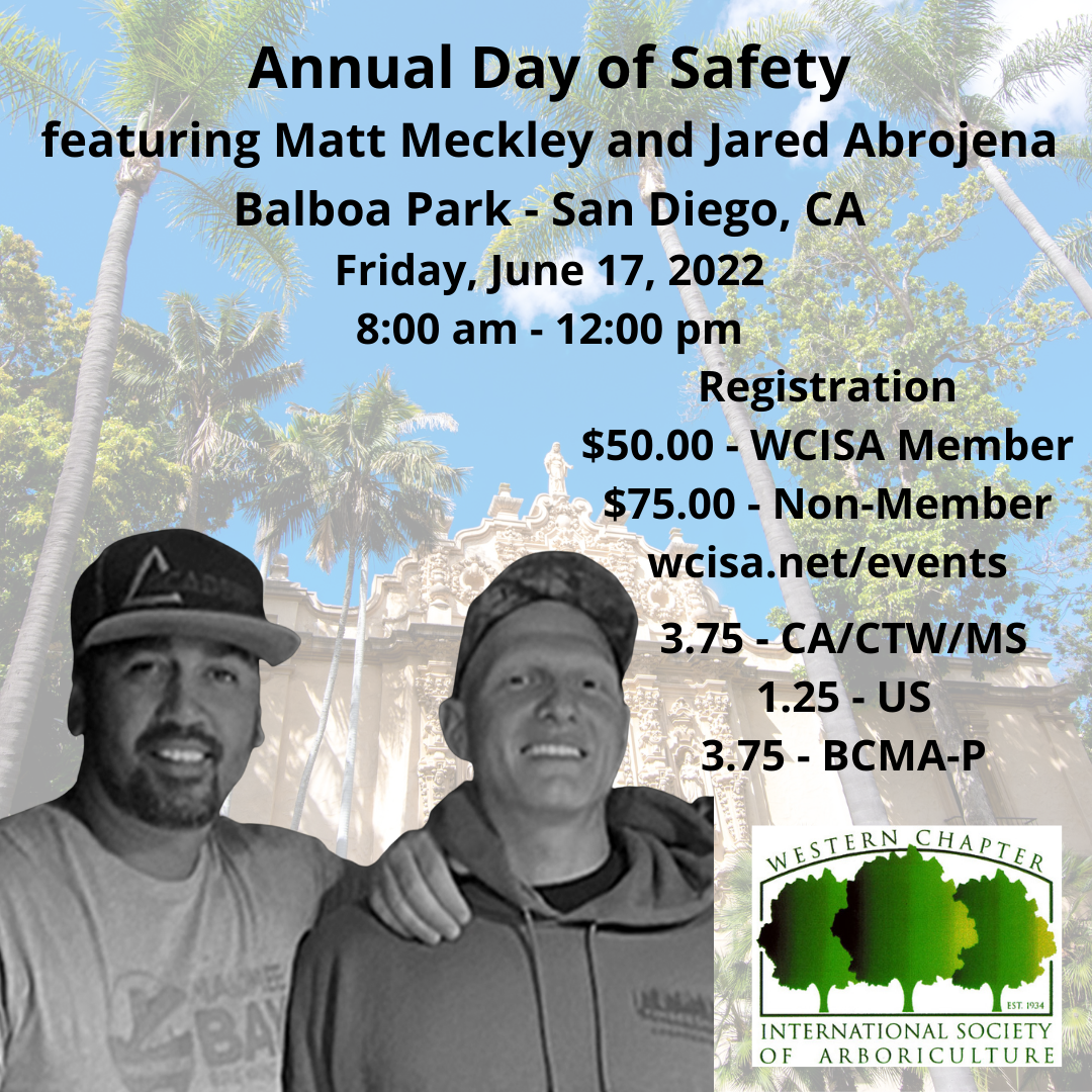 Spend the morning outside with tree care pros Matt Meckley and Jared Abrojena. Safety is always a top priority in tree care. This year’s Day of Safety will focus on systems, loads and responses. Come on out and join us for the day.